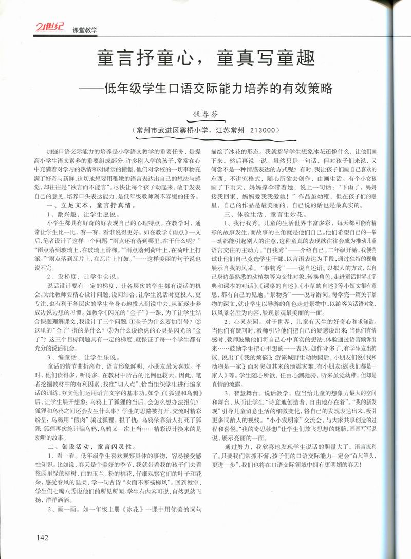 发表论文:童心抒童心 童真写童真(钱春芬)