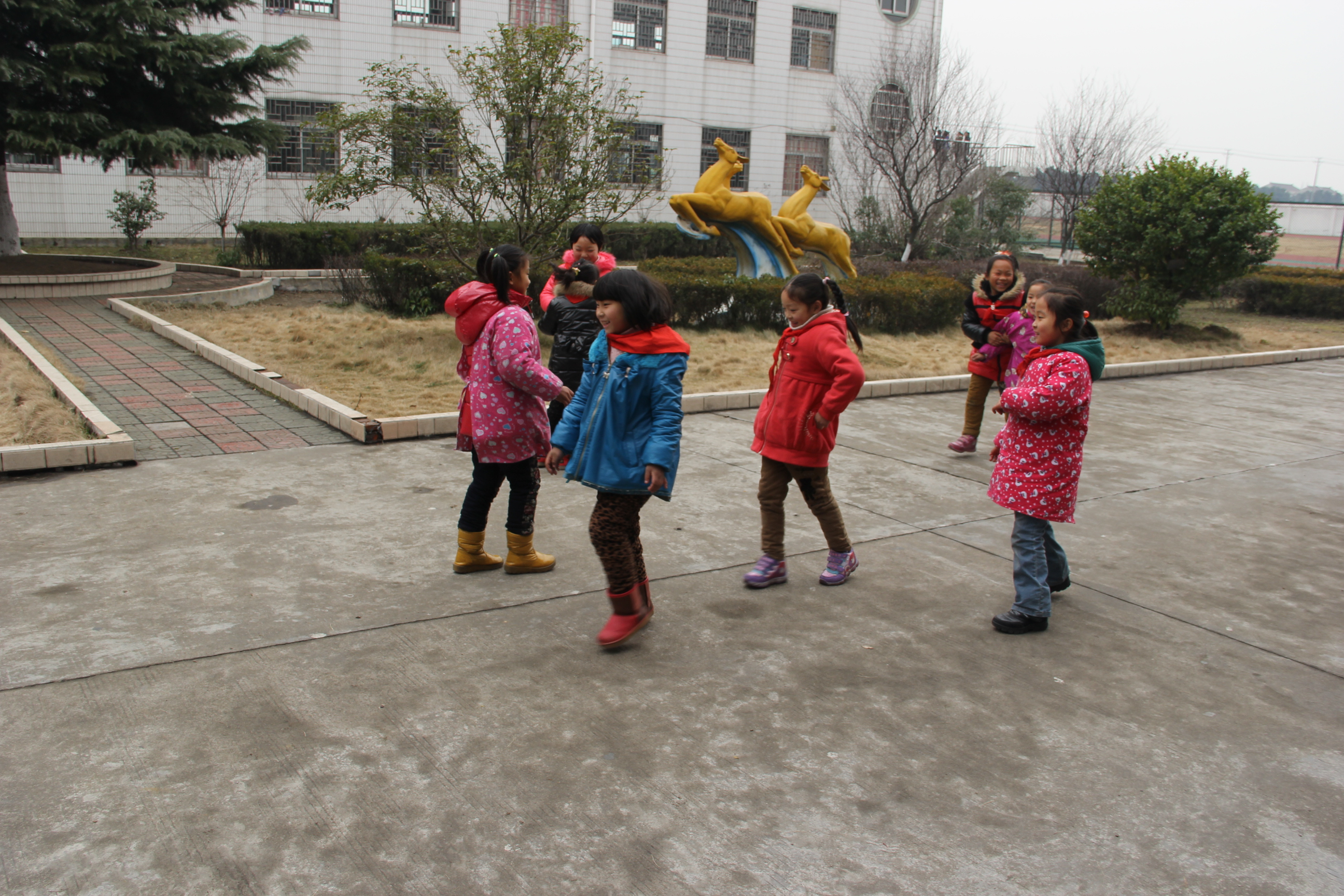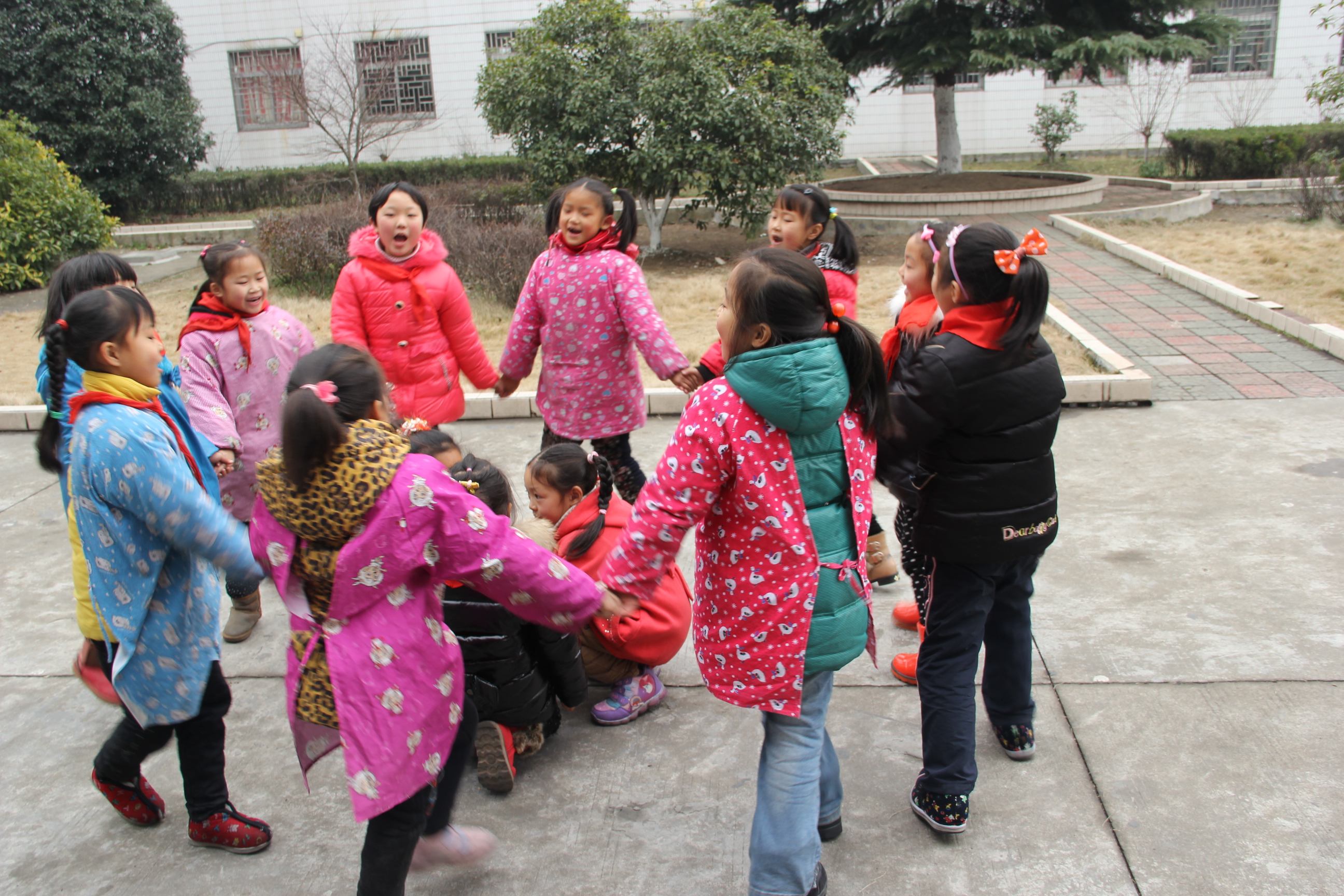 游戏方法:学生围成一个大圆圈,请几名学生蹲在圈内扮演“荷花”,圈上的学生边念儿歌便围着“荷花”走,当念到“六月荷花朵朵开”时,圈上学生做开花动作后四散跑开,而圈内的“荷花”就跑去抓住,抓到学生就算获胜。