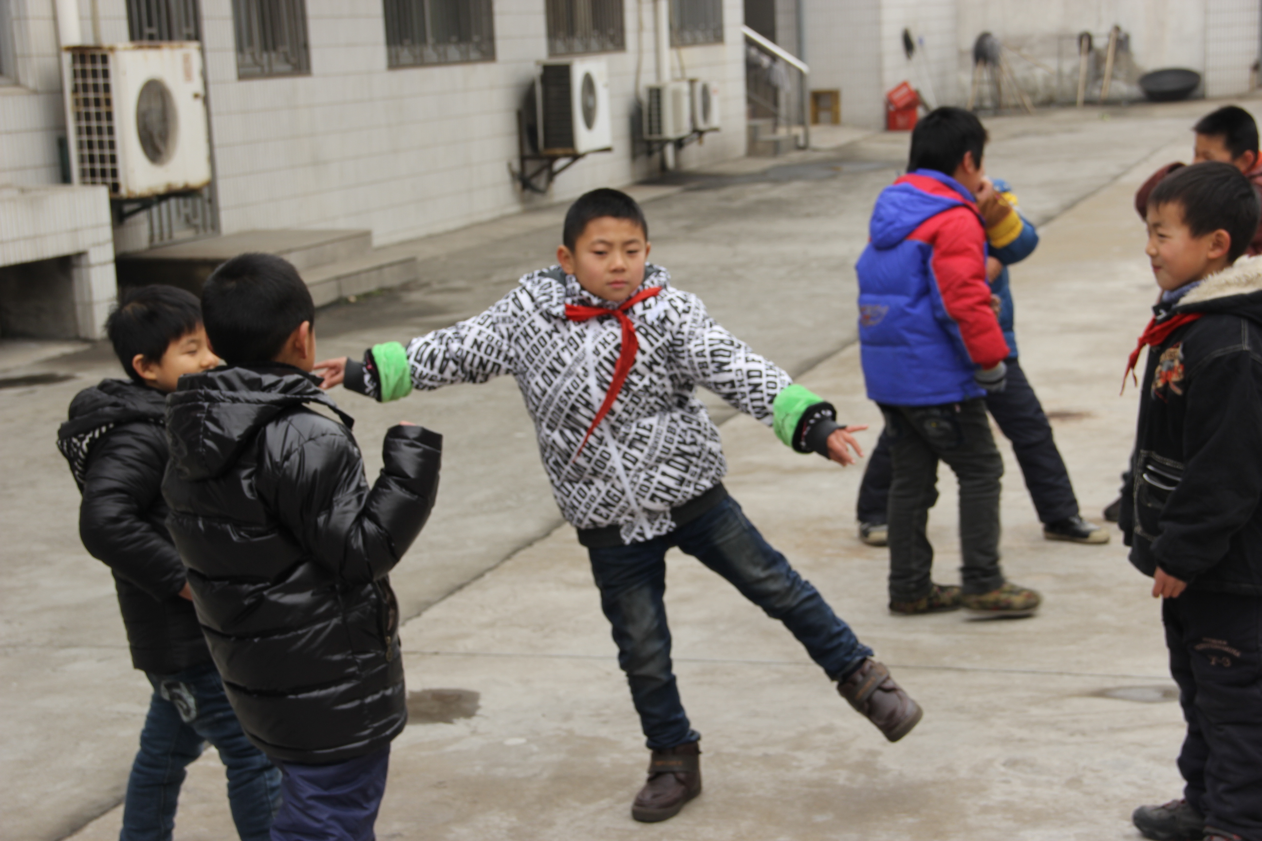 游戏方法::师生共同玩游戏“山上有个木头人”。让学生听口令做动作,儿歌结束后学生站定,不能说话也不能动,看谁坚持的时间最长。