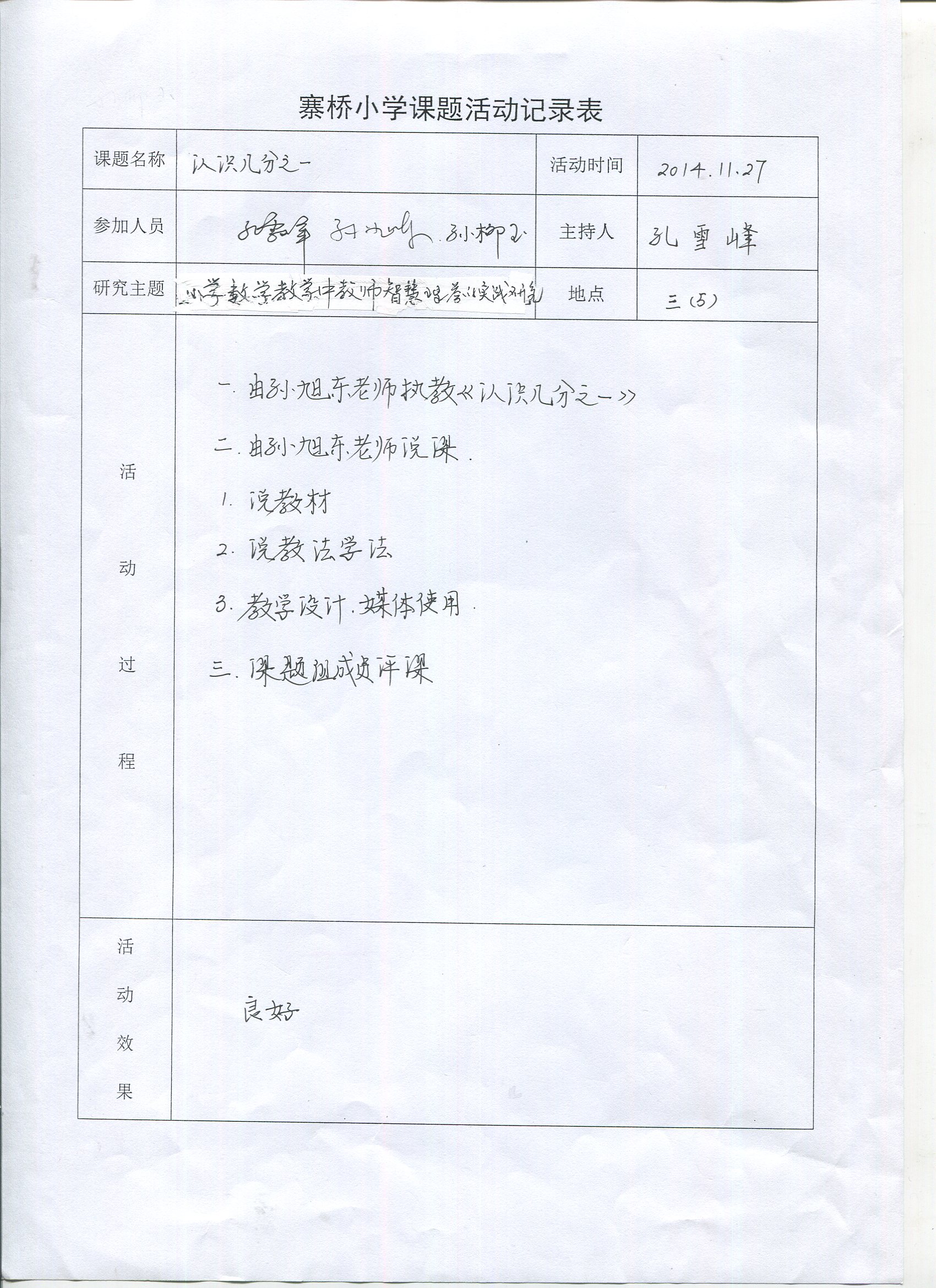 寨桥小学教科研课题研究活动情况登记表(2014.11.7 )