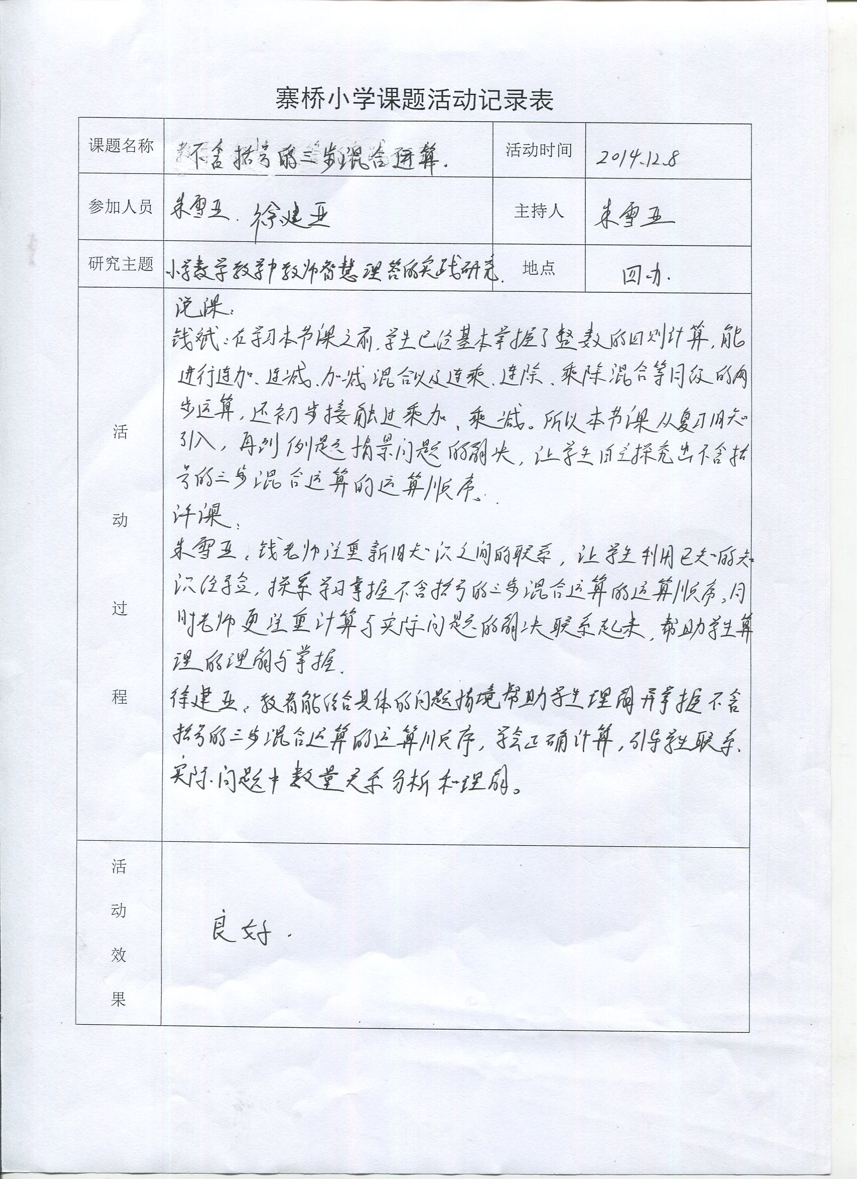 > 课题研究 > 小学数学教学中教师智慧理答的实践研究(已结题) > 过程材料 > 活动记录