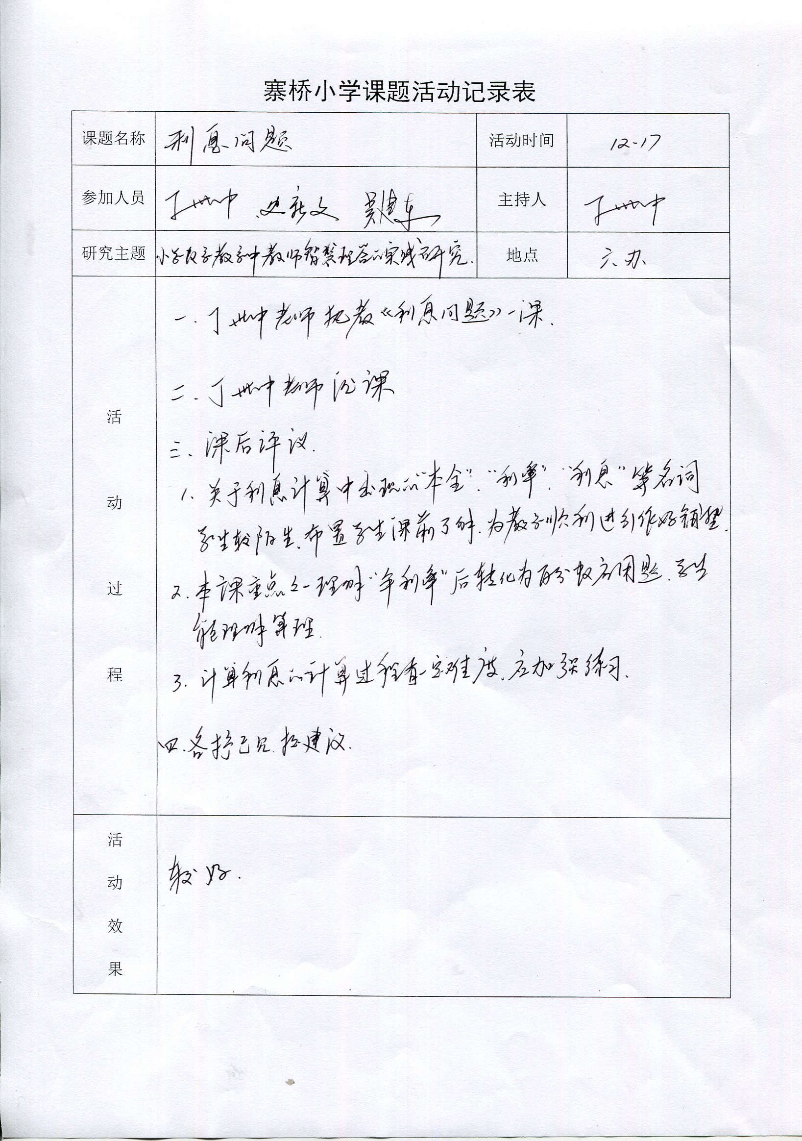 > 课题研究 > 小学数学教学中教师智慧理答的实践研究(已结题) > 过程材料 > 活动记录