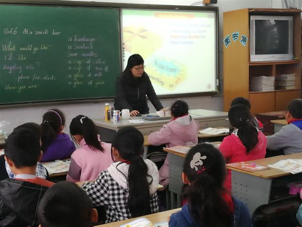 首先观摩两节研究课,由朱丽俊老师、蒋丰老师执教《At a snack bar》和《Hobbies》。朱丽俊老师的导入部分新颖自然,易让学生接受,通过师生对话,很巧妙地对新知进行了引出与巩固。蒋丰老师通过游戏导入为学生创设英语学习的情境,让学生在情境中快乐地学习英语。收到了较好的效果。